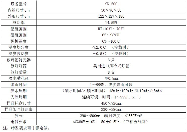 本產(chǎn)品嚴格按GB/T16422.2-99的技術(shù)參數(shù)設(shè)計制造.同時符合(GB/T1865-2009、GB/T9344-88、ASTMG155、GB/T16422.2、GB/T2423.24-1995、ISO10SB02/B04、SAEJ2527、SAEJ2412)等相關(guān)標準