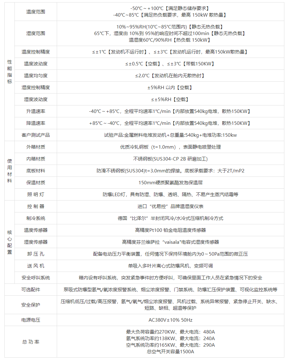升溫速率 | -40℃~+85℃,全程平均速率1℃/min【內部放置540kg電堆,散熱150KW】 | |