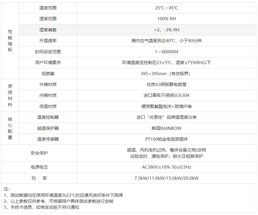 升溫速率 | 箱內(nèi)空氣溫度到達(dá)40℃,小于90分鐘 | ||||||