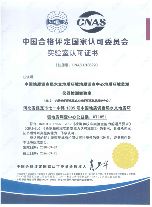 熱烈祝賀自然資源部中國地質(zhì)調(diào)查局水文地質(zhì)環(huán)境地質(zhì)調(diào)查中心地質(zhì)環(huán)境監(jiān)測儀器檢測實驗室順利通過CNAS現(xiàn)場評審,并正式取得由中國合格評定國家認可委員會(CNAS)頒發(fā)的實驗室認可證書。雅士林全體員工表示熱烈祝賀,同時也希望能夠加強和各個新老客戶之間的合作。