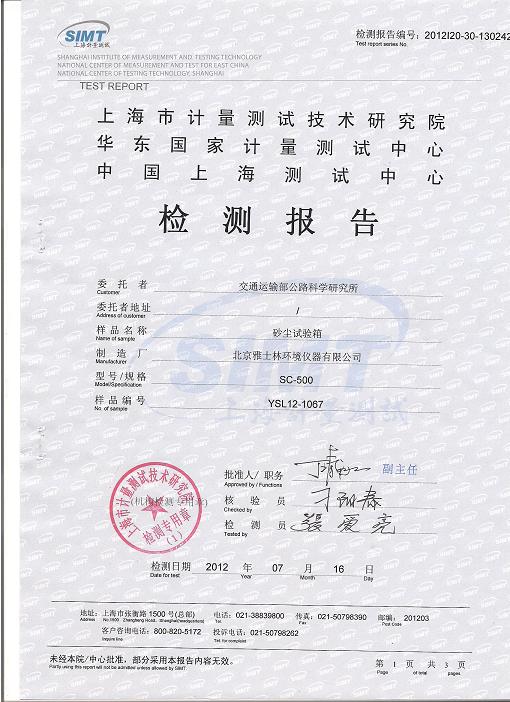 >>砂塵試驗(yàn)箱檢測報告-上海計(jì)量院-交通運(yùn)輸部