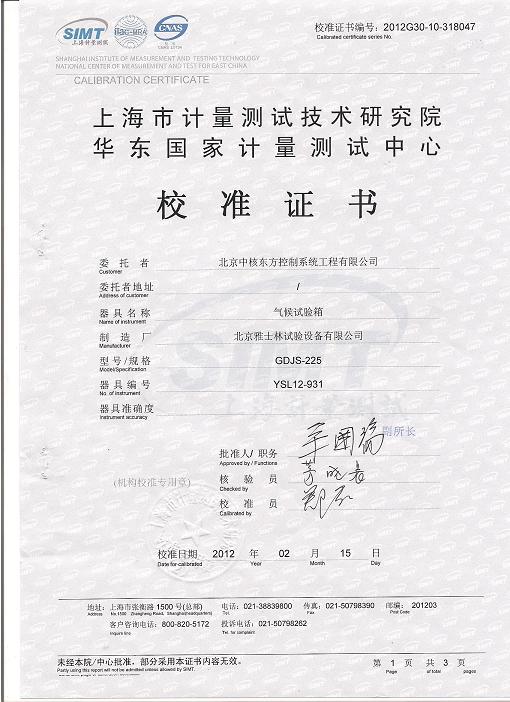 ·氣候試驗箱校準證書-上海計量院-中核控制1