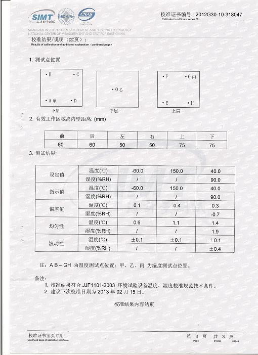 氣候試驗箱校準證書-上海計量院-中核控制1