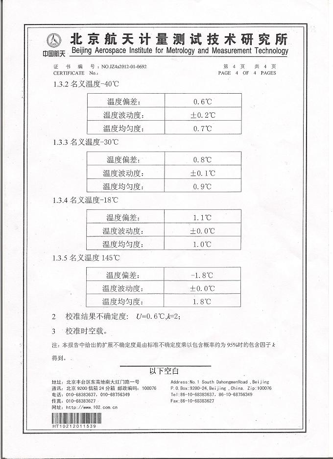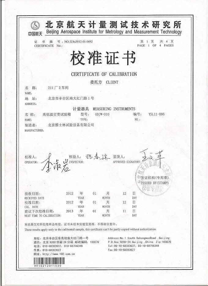 ·高低溫交變?cè)囼?yàn)箱校準(zhǔn)證書-航天計(jì)量-航天一院