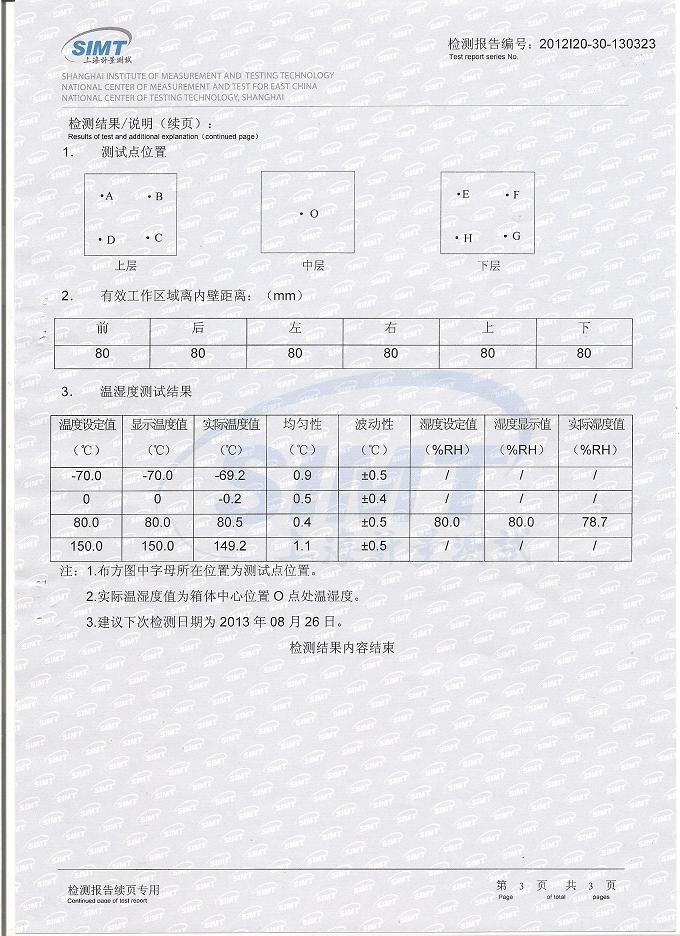 ·高低溫交變濕熱試驗箱檢測報告-上海計量院-振華集團
