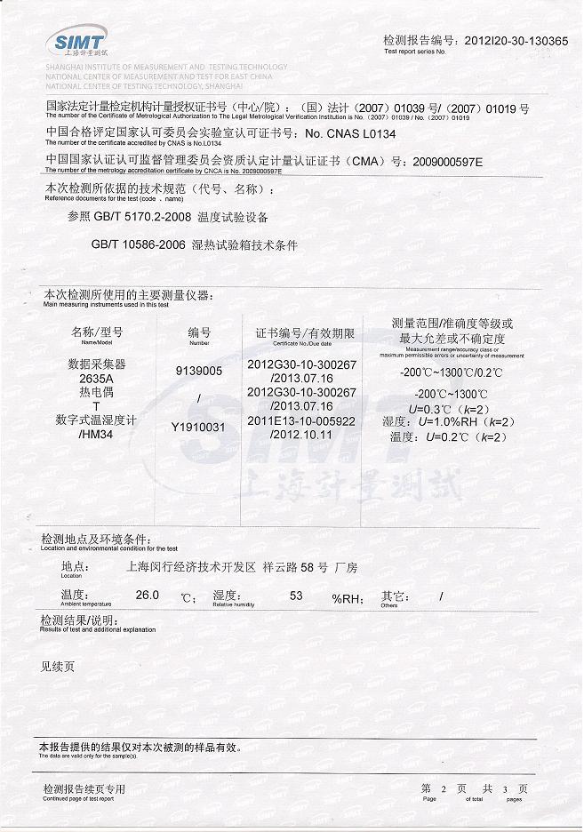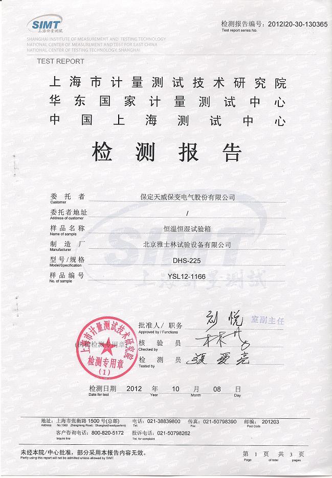 >>恒溫恒濕試驗(yàn)箱檢測報(bào)告-上海計(jì)量院-天威保變