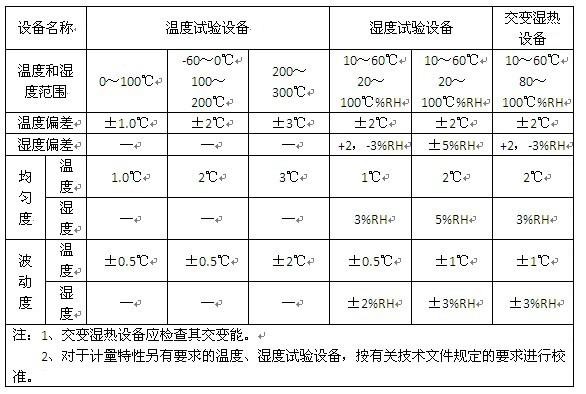 高低溫系列試驗箱出廠前廠家都會自帶一份內部檢測報告,如內部檢測報告不能滿足用戶要求時,可請計量院上門對設備進行檢測并出具檢測報告(需付費)。計量院會對高低溫系列試驗箱的溫度偏差、溫度均勻度、溫度波動度,相對濕度偏差、相對濕度均勻度、相對濕度波動度進行計量,其技術要求如下: