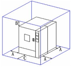 9、高低溫試驗箱周圍應(yīng)留有適當(dāng)?shù)氖褂眉熬S護(hù)空間,如下圖所示:注:A:不小于60cm B:不小于60cm C: 不小于70cm