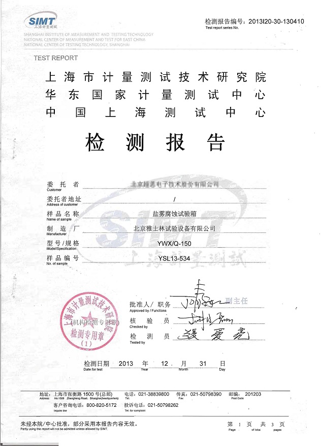 >>鹽霧腐蝕試驗箱檢測報告模板下載--上海計量院